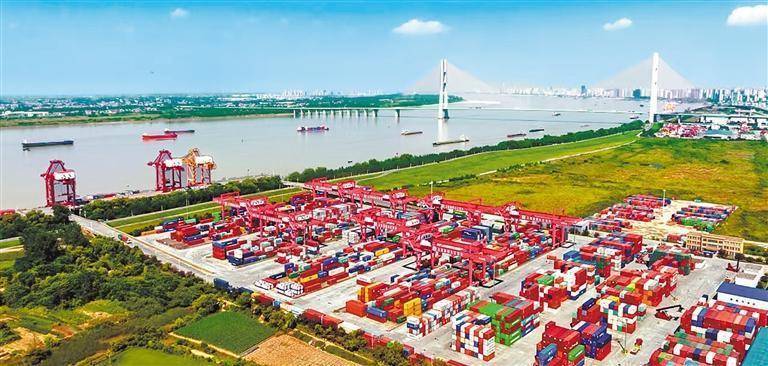 2025年6月30日,位于九江经济技术开发区的九江兴港集装箱码头有限公司码头,货轮正有序装卸集装箱。魏东升摄(中经视觉)