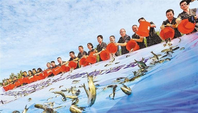 2025年6月4日,一场覆盖长江中下游四省六地的司法协作增殖放流活动在九江瑞昌市码头镇举行,20万尾鱼苗被放流至长江。魏东升摄(中经视觉)