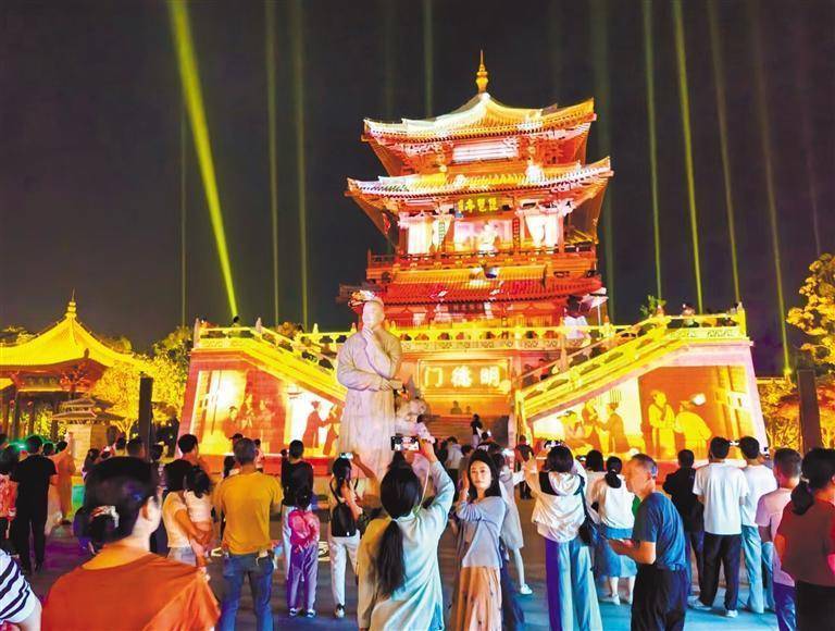 2025年5月3日,夜色中的长江国家文化公园九江城区段琵琶亭景点灯光璀璨,吸引众多游客前来游玩。刘 家摄(中经视觉)