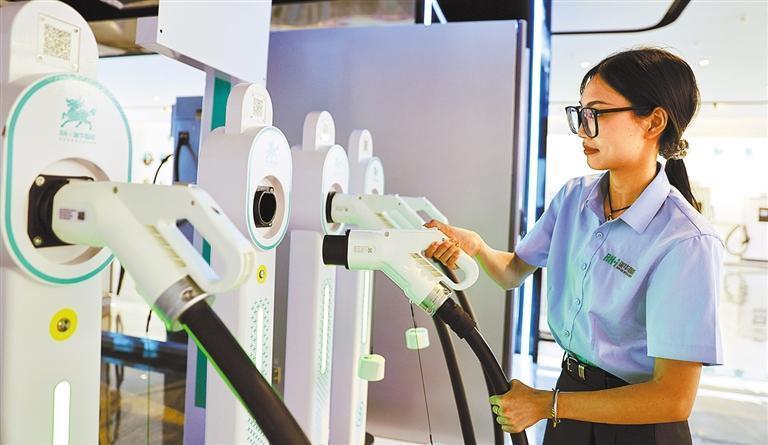 2025年7月9日,九江市瑞昌经开区智造小镇江西瑞华智能科技有限公司生产车间,员工在生产新能源汽车充电桩。魏东升摄(中经视觉)